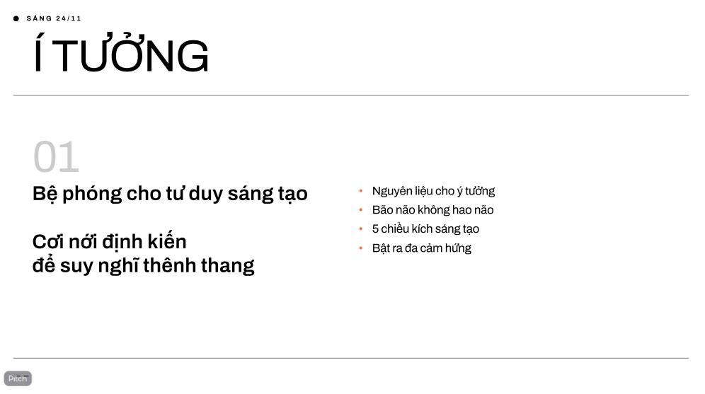 Bạn đừng mất công so sánh nó với Canvas làm gì, mỗi bên có thế mạnh và vai trò khác nhau. Mình thích Pitch vì nó biết cách “dìu” mình làm một bài thuyết trình, không chỉ tung ra thiết kế đẹp.